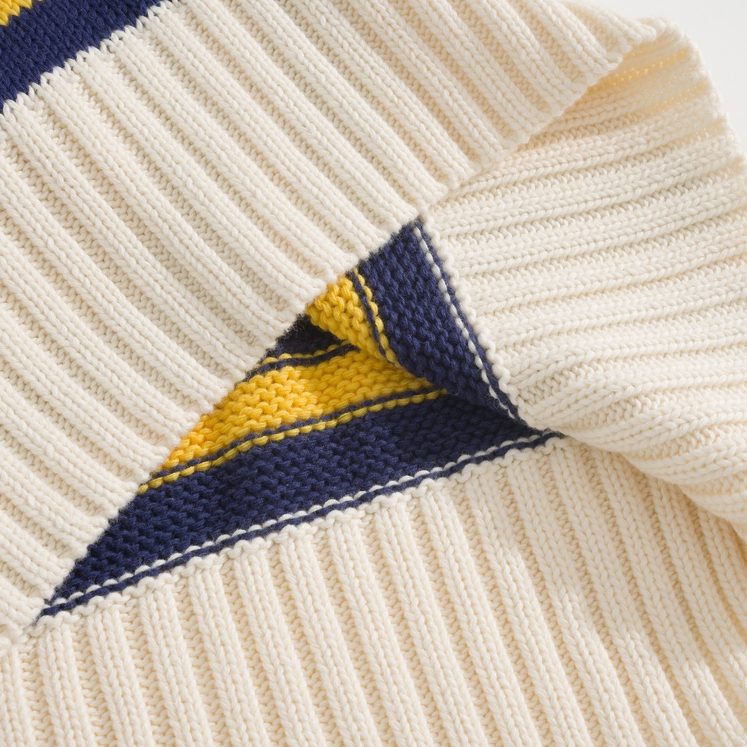고객님께서 지금보시고 계시는 상품은 Ralph Lauren 2025 F/W 컬렉션의 RLTC 테니스 케이블 니트 울 브이넥 스웨터입니다. 고밀도로 직조된 두께감 있는 울 소재를 사용하여 뛰어난 보온성과 부드러운 착용감을 동시에 제공하며, 촘촘하게 표현된 케이블 조직이 클래식한 텍스처를 완성합니다. 크림 톤의 부드러운 컬러를 베이스로 구성되어 따뜻하고 세련된 분위기를 연출하며, 브이넥 라인에는 네이비와 옐로우 스트라이프 디테일이 더해져 고급스러운 프레피 감성을 강조합니다. 가슴에는 교차된 테니스 라켓과 RLTC 레터링 자수가 적용되어 브랜드의 스포츠 헤리티지를 상징적으로 표현하며 디자인의 포인트를 완성합니다. 여유 있는 실루엣과 안정적인 핏으로 다양한 스타일에 자연스럽게 어우러지며, 셔츠와 레이어드하거나 단독으로 착용해도 완성도 높은 룩을 연출할 수 있습니다. 클래식과 스포츠 감성이 조화를 이루는 프리미엄 니트 아이템입니다.