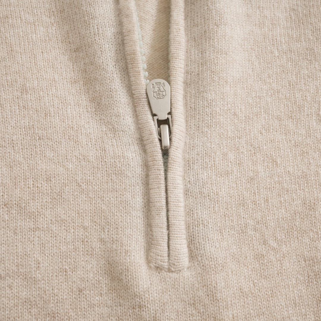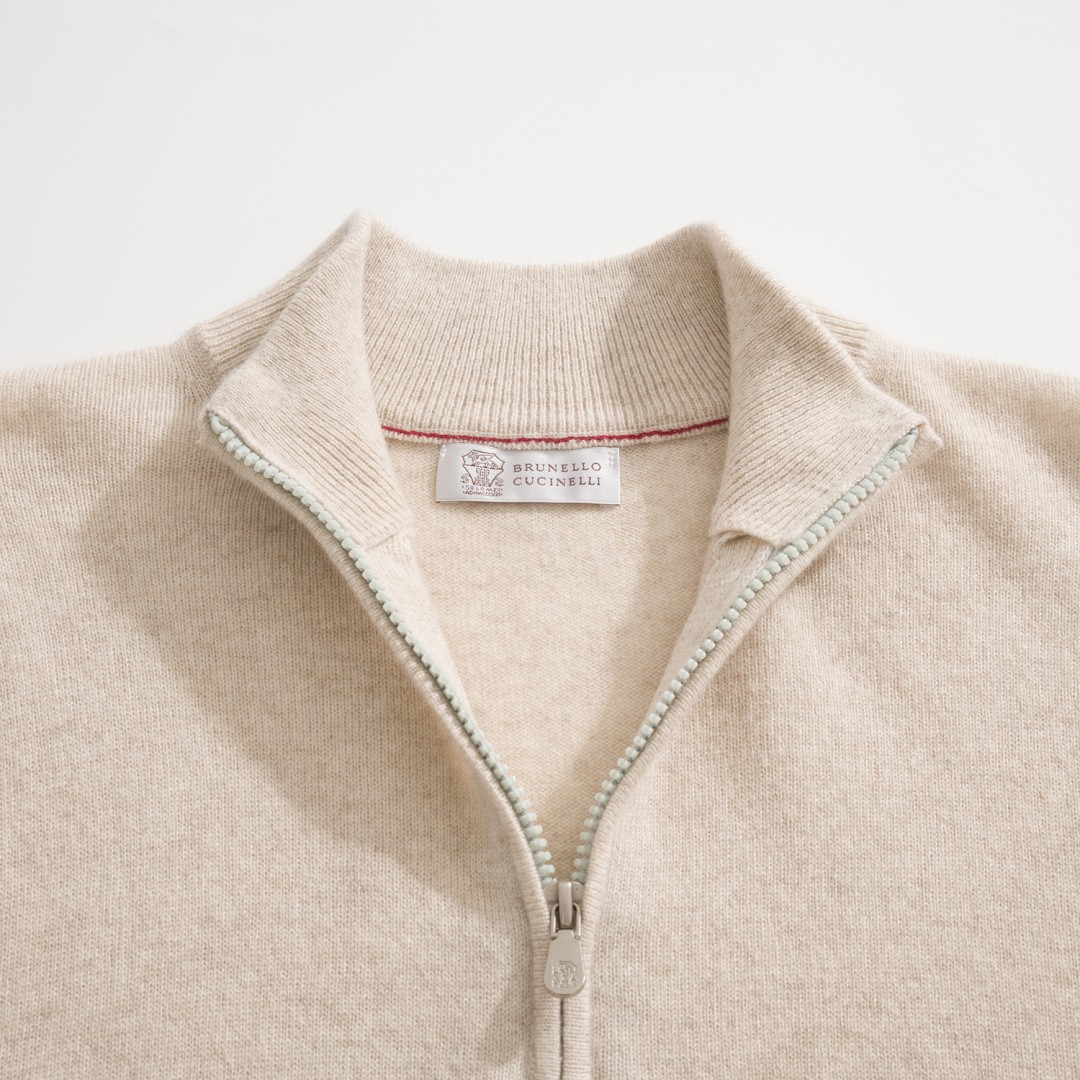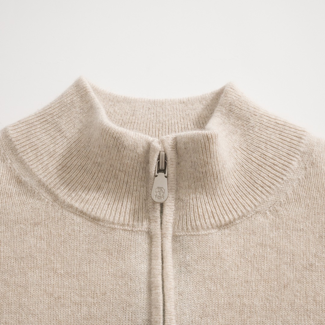 고객님께서 지금보시고 계시는 상품은 Brunello Cucinelli 2025 F/W 컬렉션의 울 캐시미어 하프집 니트 재킷입니다. 90% 초극세 울과 10% 캐시미어가 혼방된 고급 원사를 사용하여 부드러운 촉감과 뛰어난 보온성을 동시에 제공하며, 피부에 직접 닿아도 자극 없이 편안한 착용감을 선사하는 제품입니다. 고급 울의 섬세한 조직감이 캐시미어에 준하는 부드러움을 구현하면서도 관리가 용이한 실용성을 갖춘 것이 특징입니다. 하프 집업 구조로 제작되어 다양한 스타일 연출이 가능하며, 단정하면서도 여유 있는 실루엣으로 세련된 분위기를 완성합니다. 전체적으로 절제된 디자인 속에서 소재의 고급스러움이 돋보이며, 데일리부터 세미 포멀까지 폭넓게 활용할 수 있습니다. 클래식한 감성과 현대적인 감각이 조화를 이루는 프리미엄 니트 아우터입니다.