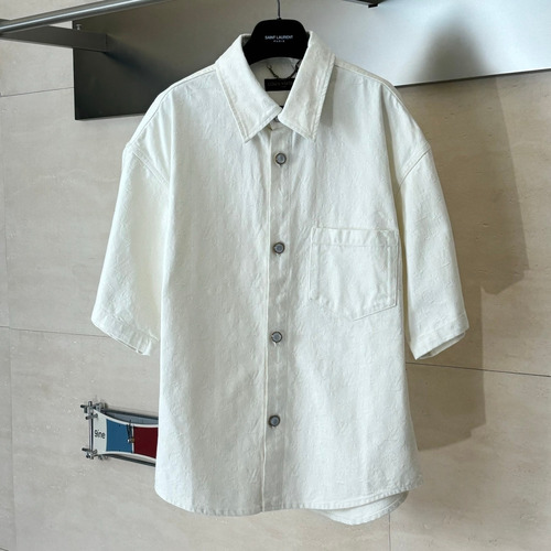 Louis Vuitton SS26 Monogram Jacquard Short Sleeve Denim Shirt 루이비통 SS26 모노그램 자카드 반팔 데님 셔츠 |