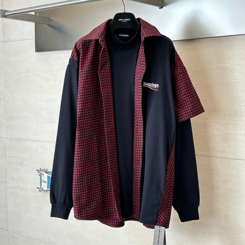 Balenciaga Early Spring Check Patchwork Long Sleeve Shirt 발렌시아가 얼리 스프링 체크 패치워크 롱슬리브 셔츠 |