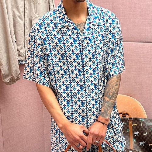 고객님께서 지금보시고 계시는 상품은 루이비통 2026 S/S 컬렉션의 모노그램 오버랩 그라데이션 실크 반팔 셔츠입니다. 브랜드를 대표하는 모노그램 패턴을 겹쳐 표현한 오버랩 프린트 기법과 그라데이션 블루 컬러를 결합하여 예술적인 감각을 완성한 제품입니다. 고급 뽕나무 실크 원단을 사용하여 가볍고 부드러운 착용감을 제공하며, 자연스러운 광택감이 세련된 분위기를 연출합니다. 쿠바 칼라 기반의 여유 있는 실루엣으로 제작되어 편안한 착용감을 제공하며, 전체적으로 펼쳐진 모노그램 패턴이 강렬한 시각적 포인트를 더해줍니다. 단독 착용만으로도 스타일의 완성도를 높이며, 동일 패턴 쇼츠와 셋업으로도 연출 가능한 시즌 핵심 아이템입니다. 모노그램 오버랩 그라데이션 실크 반팔 셔츠 블루 컬러 기반 예술적 패턴 디자인 루즈핏으로 편안한 착용감 제공 미디 기장으로 다양한 스타일링 가능 고급 실크 소재의 프리미엄 아이템