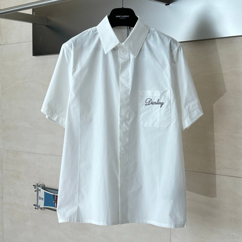 Dior FW25 Logo Embroidered Cotton Short Sleeve Shirt 디올 FW25 로고 자수 코튼 반팔 셔츠 |