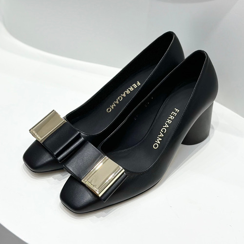 고객님께서 지금보시고 계시는 상품은 부드러운 나파 송아지 가죽과 세련된 더블 리본 디테일이 돋보이는 살바토레 페라가모 블록 힐 펌프스입니다. 유연하고 고급스러운 나파 가죽이 발을 부드럽게 감싸주어 장시간 착용에도 편안한 착화감을 제공하며, 은은한 광택이 우아한 분위기를 완성합니다. 앞코는 안정감 있는 스퀘어 토 디자인으로 제작되어 클래식하면서도 현대적인 실루엣을 연출하며, 상단에는 메탈과 가죽이 결합된 더블 리본 장식이 적용되어 고급스러운 포인트를 더합니다. 6cm 높이의 원통형 블록 힐 구조로 안정적인 보행과 편안한 착화감을 동시에 제공하며, 오피스룩부터 모임, 데일리 스타일링까지 다양한 코디에 자연스럽게 어울리는 활용도 높은 제품입니다. 페라가모의 더블 리본 디테일이 적용된 블록 힐 펌프스입니다. 부드러운 나파 가죽으로 고급스럽고 편안한 착화감을 제공합니다. 스퀘어 토 디자인으로 세련된 실루엣과 안정감을 동시에 제공합니다. 6cm 블록 힐 구조로 장시간 착용에도 부담이 적습니다. 데일리와 오피스룩 모두에 잘 어울리는 활용도 높은 여성 구두입니다.