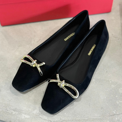 상품 정보 • 페라가모의 비대칭 리본 디테일이 적용된 발레리나 플랫입니다.