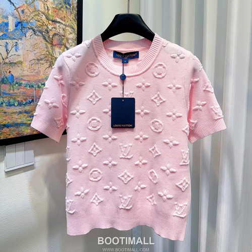 제품명 Louis Vuitton Monogram Jacquard Cropped Knit Short Sleeve Top 루이비통 모노그램 자카드 크롭 니트 반팔 탑