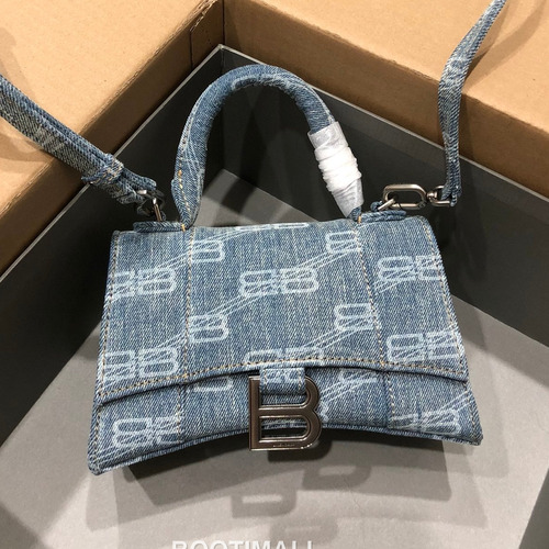 Balenciaga Hourglass Denim Print Leather Top Handle Bag 발렌시아가 아워글래스 데님 프린트 가죽 탑핸들 백 24cm |