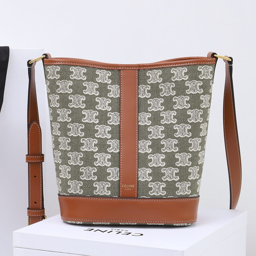 CELINE Triomphe Embroidered Canvas Bucket Bag 191442 셀린느 트리옹프 자수 캔버스 가죽 트리밍 버킷백 30cm |