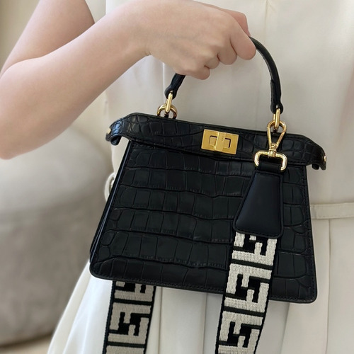 Fendi Peekaboo ISeeU Petite Croc-Embossed Leather Black Top Handle Bag 펜디 피카부 아이씨유 쁘띠 크로커 엠보스드 레더 블랙 탑핸들백 20cm |