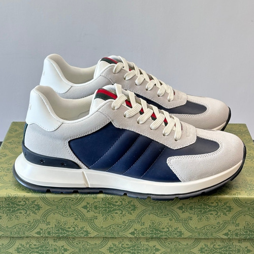 상품 정보 • 구찌 스크리너 스니커즈는 클래식한 디자인과 현대적인 컬러 조합이 돋보이는 남성용 로우 스니커즈입니다.