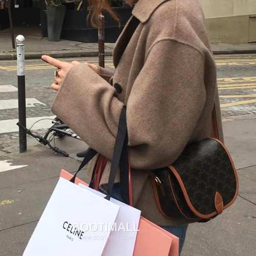 Celine Triomphe Monogram Saddle 191502 Canvas with Italian Cowhide Trim Brown Shoulder Bag 셀린느 트리옹프 모노그램 새들 191502 캔버스 이탈리아 소가죽 트리밍 브라운 숄더백 18cm |