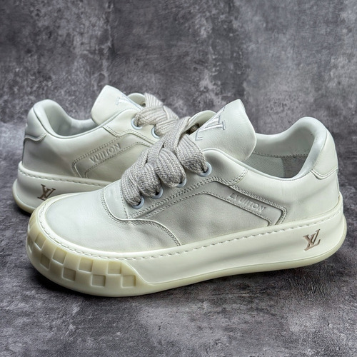 고객님께서 지금보시고 계시는 상품은 루이비통 틸티드 라인의 모노그램 데님 로우 스니커즈로, 브랜드 특유의 감각적인 디자인과 고급 소재가 조화를 이루는 프리미엄 슈즈입니다. 모노그램 패턴이 적용된 데님 갑피는 세련된 분위기를 연출하며, 내구성과 스타일을 동시에 만족시켜줍니다. 인솔에는 EVA 쿠셔닝이 적용되어 부드러운 착용감과 뛰어난 반발력을 제공하며, 발을 안정적으로 지지하는 구조로 장시간 착용에도 편안함을 유지합니다. 후면 지지 구조가 더해져 안정적인 착화감을 제공하며, 다양한 스타일에 자연스럽게 어우러지는 디자인으로 데일리와 캐주얼 룩 모두에 활용 가능한 모델입니다. 루이비통 틸티드 로우 스니커즈는 고급스러운 디자인과 편안한 착용감을 동시에 갖춘 모델입니다. 모노그램 데님 소재로 브랜드 아이덴티티를 강조합니다. EVA 쿠셔닝 구조로 장시간 착용에도 편안함을 제공합니다. 안정적인 구조와 내구성으로 실용성을 높였습니다. 데일리와 캐주얼 스타일에 모두 활용 가능한 프리미엄 스니커즈입니다.