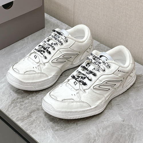 고객님께서 지금보시고 계시는 상품은 발렌시아가 햄튼스 라인의 레더 디스트레스드 청키 스니커즈입니다. 클래식한 스니커즈 실루엣을 기반으로 비대칭 패턴과 빈티지 가공 디테일을 더해 독창적인 스트릿 감성을 완성한 모델입니다. 자연스럽게 표현된 마모 디테일과 노출된 스티치, 불규칙한 컷팅 라인이 어우러져 브랜드 특유의 개성을 강조하며, 측면의 B 로고가 포인트를 더합니다. 고급 소가죽 갑피와 부드러운 텍스타일 라이닝이 편안한 착용감을 제공하며, 두툼한 고무 아웃솔이 안정적인 쿠셔닝과 접지력을 확보합니다. 트렌디하면서도 유니크한 스타일을 완성할 수 있는 데일리 스니커즈입니다. 발렌시아가 햄튼스 라인의 디스트레스드 청키 스니커즈입니다. 빈티지 가공과 비대칭 디자인으로 강한 개성을 표현합니다. 소가죽 갑피와 텍스타일 내피로 편안한 착용감을 제공합니다. 두툼한 고무 아웃솔로 안정적인 착화감을 유지합니다. 스트릿과 캐주얼 스타일에 모두 어울리는 트렌디한 스니커즈입니다.
