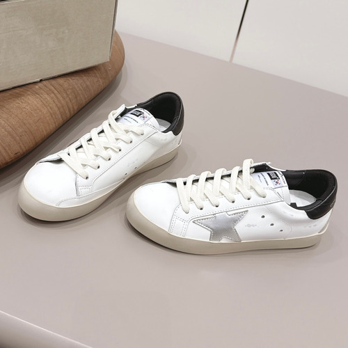 고객님께서 지금보시고 계시는 상품은 골든구스 Space Star 라인의 레더 디스트레스드 청키 스니커즈입니다. 브랜드 특유의 빈티지 더티 가공과 컬러 블록 디자인이 조화를 이루어 자연스러운 멋과 개성을 동시에 표현하는 모델입니다. 고급 소가죽 갑피와 부드러운 양가죽 라이닝이 발을 편안하게 감싸주며, 착용할수록 더욱 자연스러운 분위기를 연출합니다. 두툼한 TPU 아웃솔이 안정적인 쿠셔닝과 지지력을 제공하여 데일리 착용에도 부담이 적습니다. 다양한 스타일에 매칭 가능한 트렌디한 디자인으로 캐주얼과 스트릿 감성을 모두 담은 프리미엄 스니커즈입니다. 골든구스 Space Star 라인의 디스트레스드 스니커즈입니다. 빈티지 더티 가공으로 개성 있는 스타일을 연출합니다. 소가죽과 양가죽 내피로 편안한 착용감을 제공합니다. TPU 아웃솔로 안정적인 착화감과 쿠셔닝을 갖췄습니다. 캐주얼과 스트릿 스타일에 어울리는 프리미엄 스니커즈입니다.