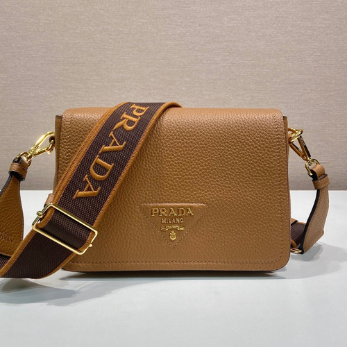 Prada Deer Grain Calfskin Flap Crossbody Bag with Dual Adjustable Strap Detail 프라다 디어 그레인 카프스킨 플랩 듀얼 조절 스트랩 크로스바디백 1BD314-1 23cm