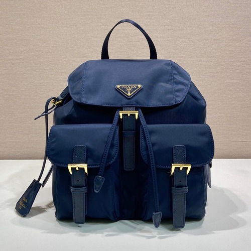 Prada Triangle Logo Lambskin Flap Backpack with Dual Front Pocket Detail 프라다 트라이앵글 로고 램스킨 플랩 백팩 듀얼 포켓 1BZ677 30cm