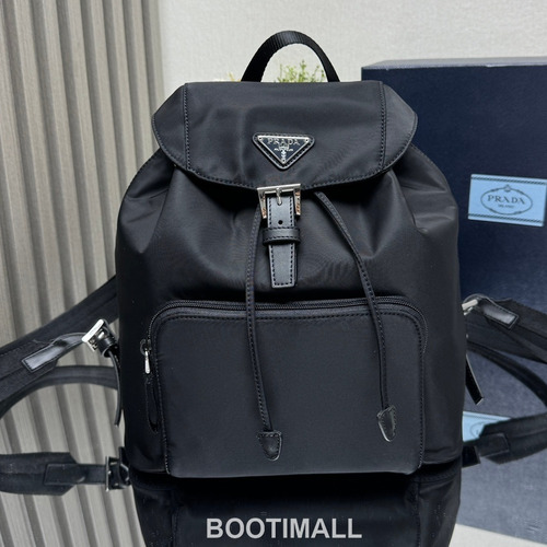 Prada Triangle Logo Nylon Backpack with Front Zip Pocket and Calfskin Trim 프라다 트라이앵글 로고 나일론 지퍼 포켓 백팩 카프스킨 트림 1BZ832 27cm |