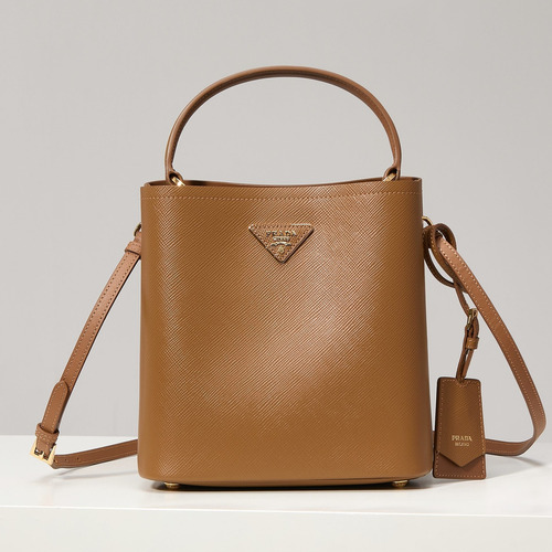 Prada Saffiano Leather Bucket Bag with Detachable Strap Name Tag and Triangle Logo Detail 프라다 사피아노 가죽 버킷백 탈부착 스트랩 네임태그 트라이앵글 로고 디테일 1BA212 22cm |