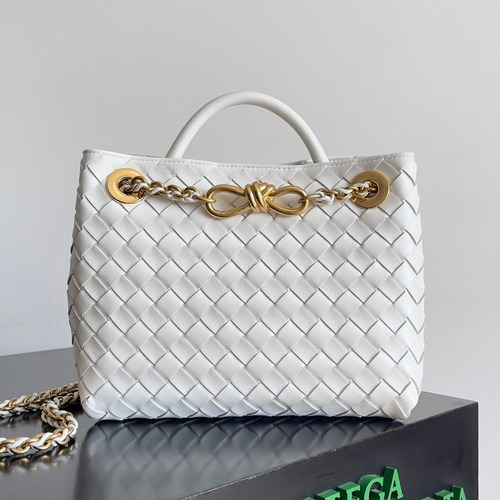 Bottega Veneta Andiamo Intrecciato Leather Chain Shoulder Bag with Brass Chain Detail 보테가베네타 안디아모 인트레치아토 가죽 체인 숄더백 황동 체인 25cm