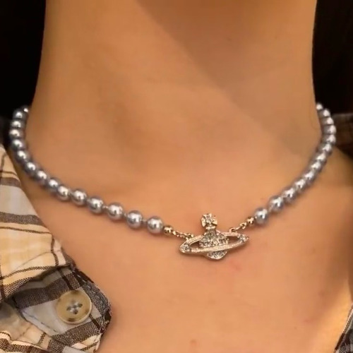 Vivienne Westwood Orb Swarovski Crystal Pearl Pendant Chain Necklace 비비안웨스트우드 오브 스와로브스키 크리스탈 펄 펜던트 체인 네클리스 |