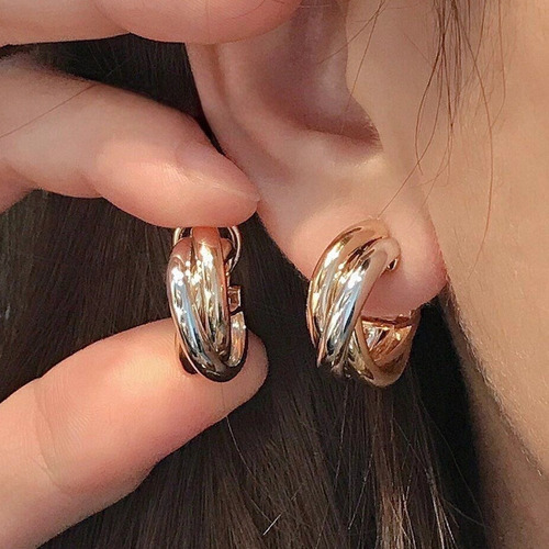 Cartier Trinity Three Tone Interlocking Hoop V Gold Earring 까르띠에 트리니티 삼색 인터락킹 후프 V 골드 이어링 |