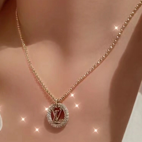 Louis Vuitton Circle Logo Full Pavé Swarovski Crystal Brass Pendant Necklace 루이비통 서클 로고 풀 파베 스와로브스키 크리스탈 황동 펜던트 네클리스 |
