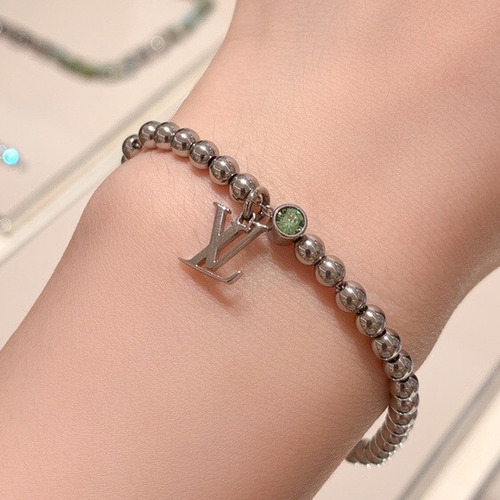 Louis Vuitton Essential V Green Crystal Silver Bead Brass Chain Bracelet 루이비통 에센셜 V 그린 크리스탈 실버 비드 황동 체인 브레이슬릿 17cm |