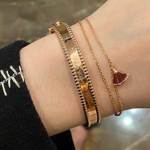 Van Cleef & Arpels Signature Brass Gold Plated Bracelet with Logo Motif 반클리프아펠 시그니처 황동 골드도금 브레이슬릿 로고 모티프 17cm |