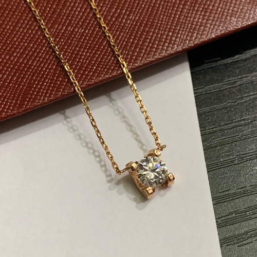 Cartier Horn Curve Brass Crystal Solitaire Pendant Necklace with Brilliant Cut 까르띠에 혼 커브 황동 크리스탈 솔리테어 펜던트 네클리스 브릴리언트 컷 45cm |