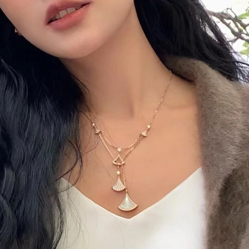 Bvlgari Divas' Dream Brass Gold Plated Necklace with Fan Pendant and Mother of Pearl 불가리 디바스 드림 황동 베이스 금도금 네클리스 팬 펜던트 자개 |