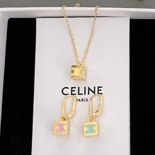 Celine Triomphe Brass Gold Plated Necklace with Enamel Square Pendant 셀린느 트리옹프 황동 베이스 금도금 네클리스 에나멜 스퀘어 펜던트 |