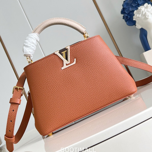 고객님께서 지금보시고 계시는 상품은 루이비통 카퓌신 타우릴론 레더 탑핸들백으로, 우아한 실루엣과 실용적인 구조를 갖춘 소형 사이즈 제품입니다. 타우릴론 소가죽을 사용하여 부드러운 질감과 안정적인 형태를 제공하며, 메탈 로고 디테일로 완성도를 높였습니다. 플랩 구조와 정돈된 내부 구성으로 일상에서 편리하게 사용할 수 있습니다. 구성품: 정품 박스, 더스트백, 쇼핑백, 구매 영수증 포함 타우릴론 가죽으로 부드럽고 고급스러운 질감 제공 플랩 구조와 내부 지퍼 포켓으로 수납 효율 강화 탈부착 가능한 스트랩으로 다양한 연출 가능 소형 사이즈로 가볍고 실용적인 데일리 활용 가능