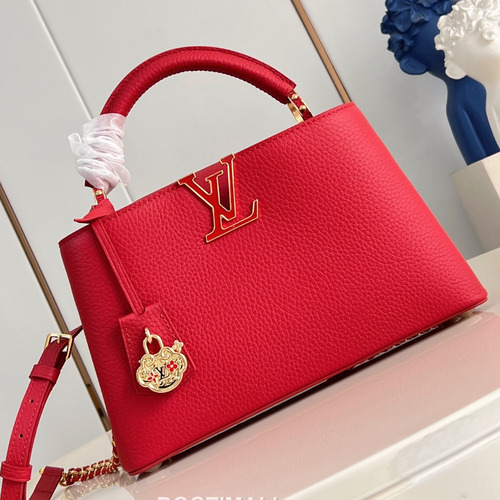 Louis Vuitton Capucines East-West BB Taurillon Leather Top Handle Bag with Strap Logo Detail 루이비통 카퓌신 이스트웨스트 BB 타우릴론 레더 탑핸들백 M27300 26.5cm |