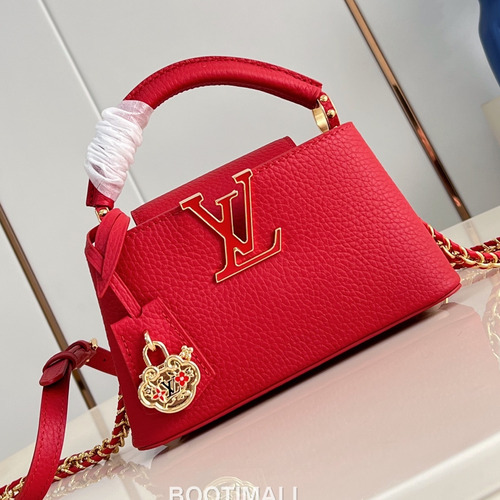 고객님께서 지금보시고 계시는 상품은 루이비통 카퓌신 이스트웨스트 미니 타우릴론 레더 탑핸들백으로, 컴팩트한 사이즈와 세련된 디자인이 조화를 이루는 제품입니다. 타우릴론 소가죽에 가죽 트리밍을 더해 안정적인 구조를 완성하였으며, LV 메탈 로고 디테일로 브랜드 아이덴티티를 강조합니다. 실용적인 내부 구성과 다양한 착용 방식으로 일상에서 활용도가 높은 제품입니다. 구성품: 정품 박스, 더스트백, 쇼핑백, 구매 영수증 포함 타우릴론 가죽으로 부드럽고 고급스러운 질감 제공 브레이드 스트랩으로 다양한 스타일 연출 가능 플랩 구조와 내부 포켓으로 수납 효율 강화 미니 사이즈로 가볍고 실용적인 데일리 활용 가능