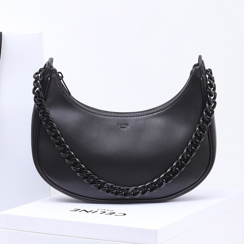 Celine Ava Calfskin Leather Shoulder Bag with Chain Strap Moon Shape Detail 셀린느 아바 카프스킨 레더 숄더백 199583 25cm |