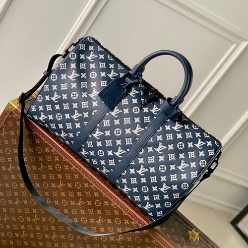 Louis Vuitton Keepall Bandoulière 50 Travel Bag Monogram Shadow Calfskin Leather Duffle Bag with Strap 루이비통 키폴 반둘리에 50 모노그램 쉐도우 카프스킨 레더 더플백 스트랩 M24953 50cm |
