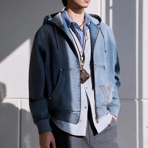 Louis Vuitton 2026SS Washed Cotton Denim Hooded Work Jacket with Embroidered Logo 루이비통 2026SS 워시드 코튼 데님 후드 워크 재킷 자수 로고 |