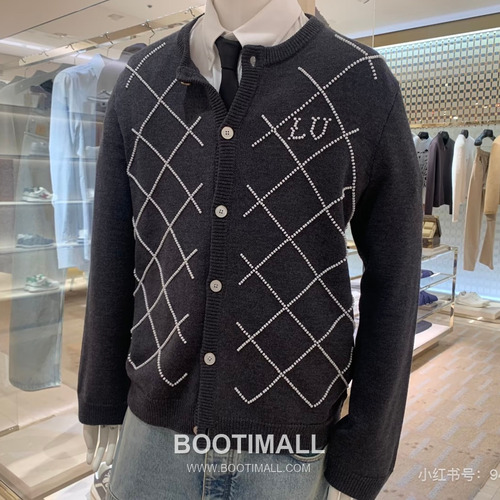 Louis Vuitton 2026SS Diamond Pattern Beaded Letter Cotton Blend Knit Cardigan 루이비통 2026SS 다이아몬드 패턴 핸드 비즈 레터 코튼 혼방 니트 가디건 |