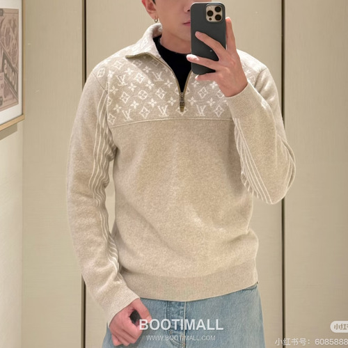 Louis Vuitton 2026FW Monogram Jacquard Wool Blend Half Zip Knit Sweater 루이비통 2026FW 모노그램 자카드 울 혼방 하프집 니트 스웨터 |