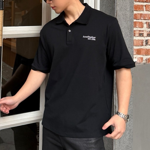 Acne Studios 2026SS Logo Embroidered Cotton Piqué Polo Shirt with Shell Button 아크네스튜디오 2026SS 로고 자수 코튼 피케 폴로 셔츠 쉘 버튼 |