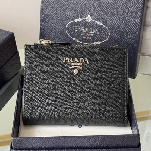 Prada Saffiano Leather Compact Wallet with Snap Closure Card Slot Detail 프라다 사피아노 레더 스냅 클로저 카드슬롯 반지갑 1ML050 10cm |