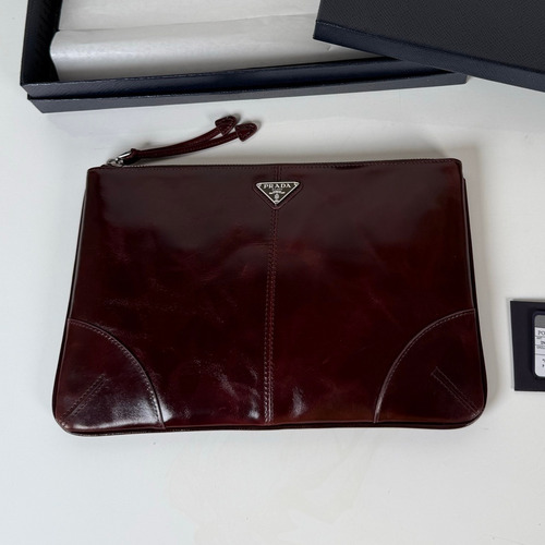 Prada Oiled Wax Leather Clutch Bag with Triangle Logo and Zip Closure 프라다 오일드 왁스 레더 트라이앵글 로고 지퍼 클러치백 2NH006A 28cm |