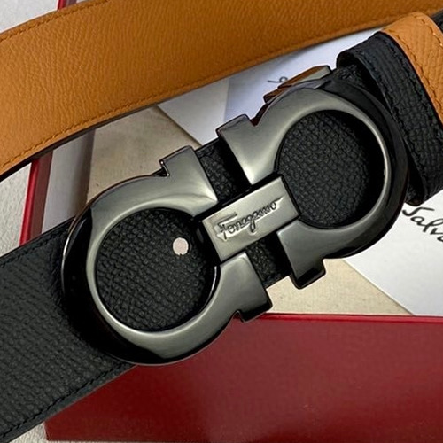 Ferragamo Gancini Calfskin Palm Grain Leather Reversible Belt with Gancini Buckle Palladium 페라가모 간치니 카프스킨 팜 그레인 레더 리버서블 벨트 간치니 버클 황동 베이스 팔라듐 피니시 3.5cm 2