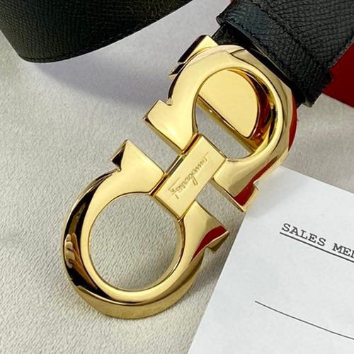 Ferragamo Gancini Calfskin Palm Grain Leather Reversible Belt with Gancini Buckle Palladium 페라가모 간치니 카프스킨 팜 그레인 레더 리버서블 벨트 간치니 버클 황동 베이스 팔라듐 피니시 3.5cm