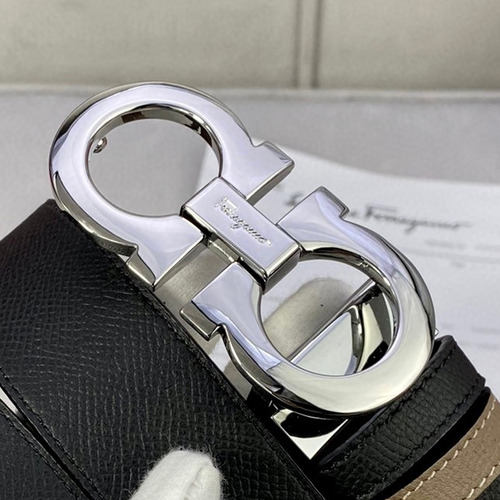 Ferragamo Gancini Calfskin Palm Grain Leather Reversible Belt with Gancini Buckle Palladium 페라가모 간치니 카프스킨 팜 그레인 레더 리버서블 벨트 간치니 버클 황동 베이스 팔라듐 피니시 3.5cm |