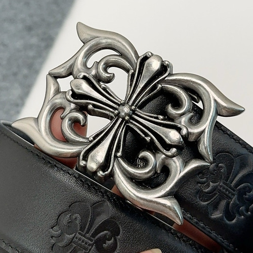 Chrome Hearts Calfskin Leather Belt with Logo Buckle Palladium 크롬하츠 카프스킨 레더 벨트 로고 버클 황동 베이스 팔라듐 피니시 3.8cm 4