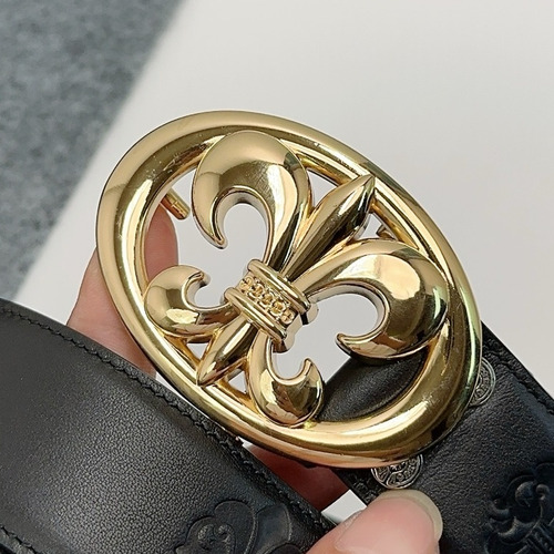 Chrome Hearts Calfskin Leather Belt with Logo Buckle Palladium 크롬하츠 카프스킨 레더 벨트 로고 버클 황동 베이스 팔라듐 피니시 3.8cm |