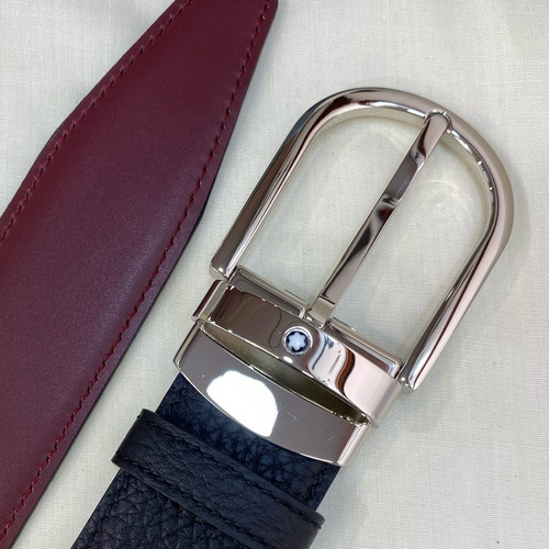 제품명 Montblanc Calfskin Leather Belt with Pin Buckle Palladium 몽블랑 카프스킨 레더 벨트 핀 버클 황동 베이스 팔라듐 피니시 3.5cm