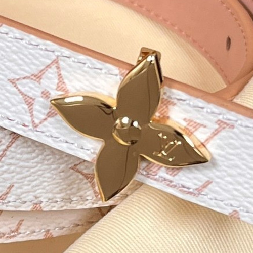 - 황동 베이스 금도금 LV 버클로 고급스러운 광택과 브랜드 아이덴티티 강조