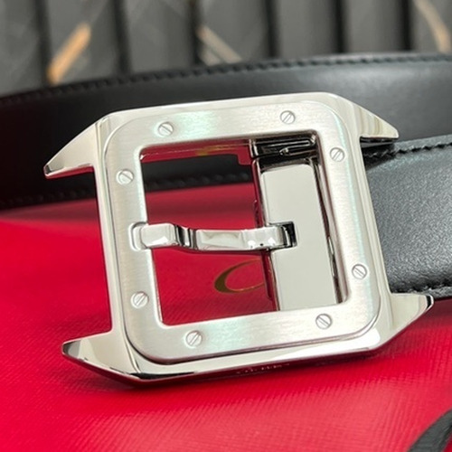 Cartier Calfskin Embossed Leather Reversible Belt with Logo Pin Buckle Palladium 까르띠에 카프스킨 엠보싱 레더 리버서블 벨트 로고 핀 버클 황동 베이스 팔라듐 피니시 3.5cm