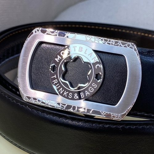 Montblanc Calfskin Leather Belt with Automatic Buckle Palladium 몽블랑 카프스킨 레더 벨트 오토매틱 버클 스테인리스 스틸 팔라듐 피니시 3.4cm